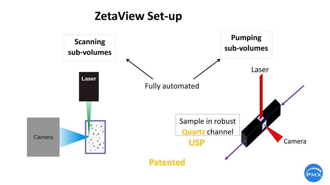 Up to the release of ZetaView® 2004, it was not possible to measure zeta potential with a first principle micro-electrophoresis set-up routinely. It was too complicated to align the optics to the stationary layers and to keep the focus sharp over a long time. With ZetaView® this is possible. As the ZetaView® was designed as a portable instrument, automation was a must. This is a strength of the instrument and guarantees repeatability and precision in concentration, size and sub-population analysis of nanoparticles, in scattering and fluorescent mode.