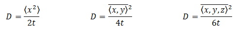 A brief introduction of the physical principle underlying NTA is as follows: When small particles are dispersed in a liquid the particles move randomly in all directions. The liquid is also termed continuous phase and can be water, or organic solvents such as 70% ethanol. The phenomenon of the random movement is termed diffusion and is expressed by the diffusion coefficient (D). In more detail, the undirected migration of given particles is caused by energy transfers from surrounding water molecules to the particle. The theory of the determination of the diffusion coefficient was developed from the famous physicist Albert Einstein [6]. In the absence of any concentration gradient within the dispersion and upon long-term observation, the distances small particles move in any direction should neutralize each other over time, leaving a total movement of almost zero. However, during given time intervals diffusing particles move within certain volume elements. In NTA the time t between two observation spots is quite short (~30 ms). The movement of the particles per time interval is recorded and quantified as the mean square displacement <x2>. Depending on the number of dimensions (one, two or all three dimensions) the observed mean square displacement, the diffusion coefficient, can be calculated as follows:
