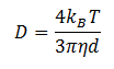 Via the Stokes-Einstein relationship the particle diameter d can be calculated as function of the diffusion coefficient D at a temperature T and a viscosity η of the liquid (κB Boltzmann’s constant)